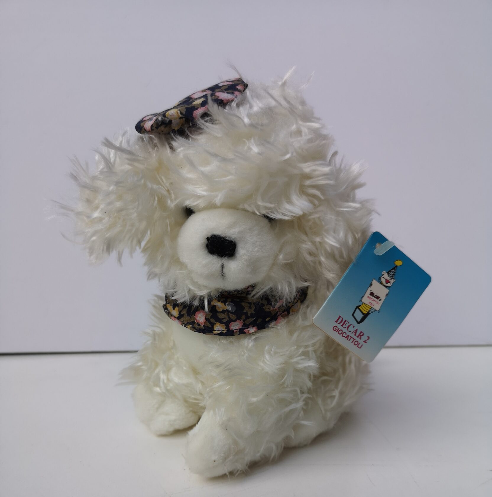 Cane barboncino di peluche con cappellino e bandana alto 18 cm del marchio De.Car.
