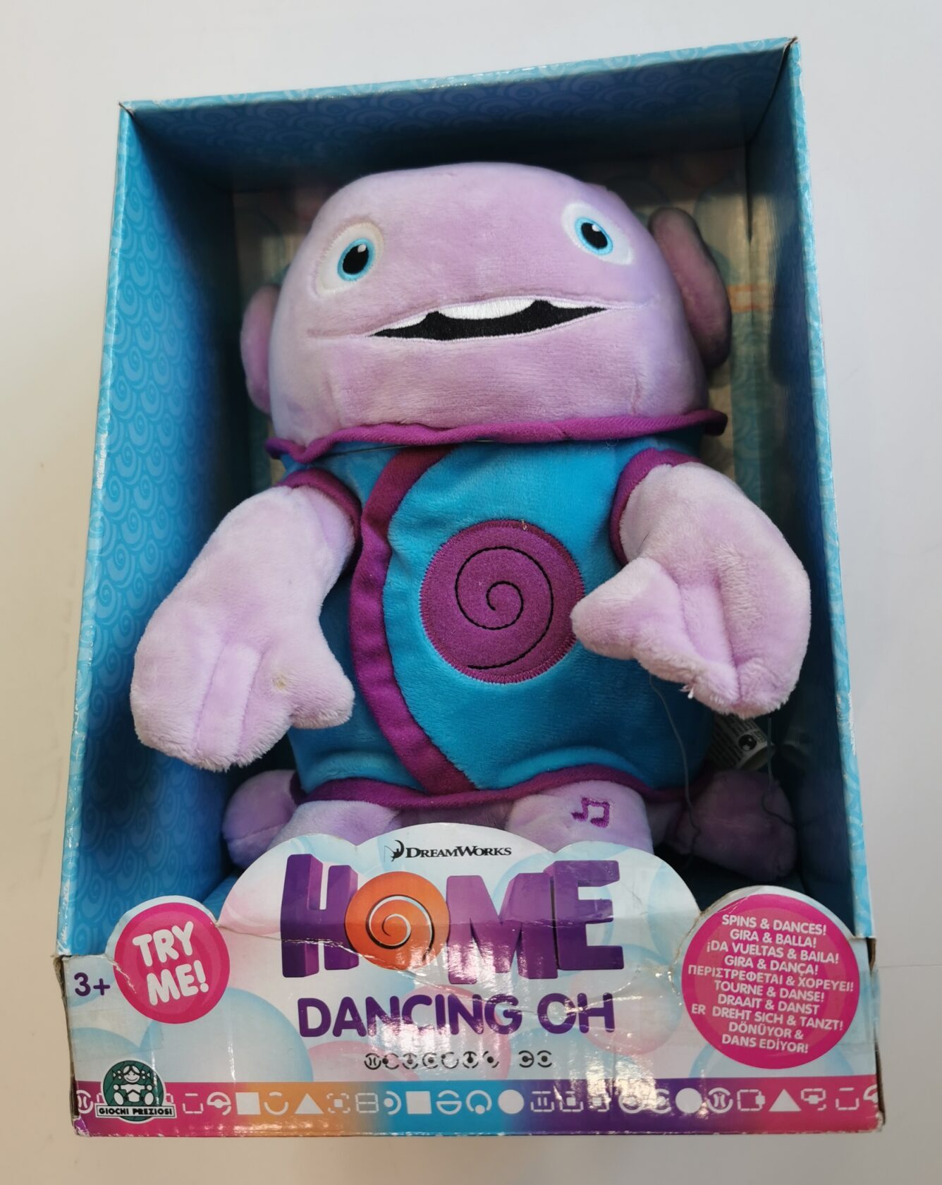 Il peluche Dreamworks Home Dancing OH da 24 cm è davvero simpatico e perfetto per far divertire i bambini. Gira su se stesso, saluta con le manine e balla a ritmo di musica con 3 canzoni incluse.