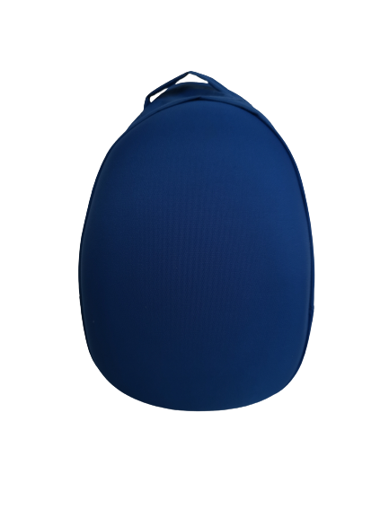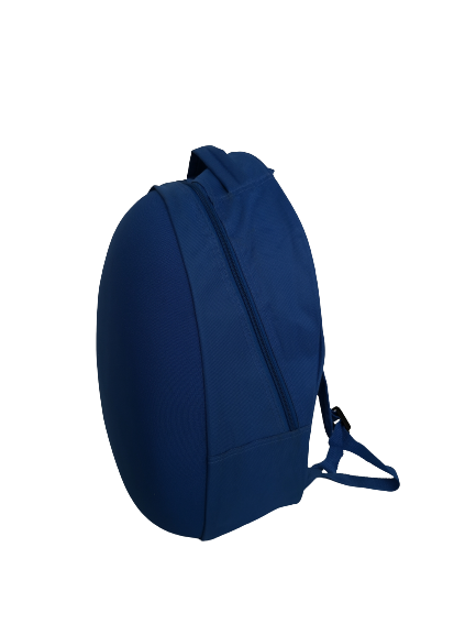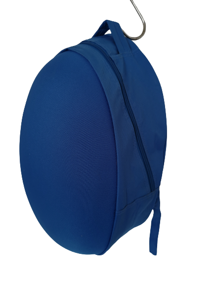 Zaino blu dall’originale forma ovale chiuso con cerniera a doppia zip.